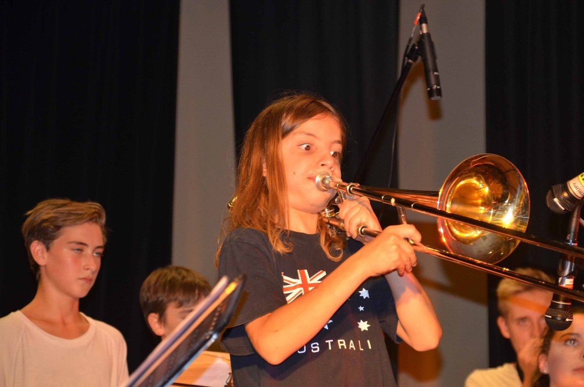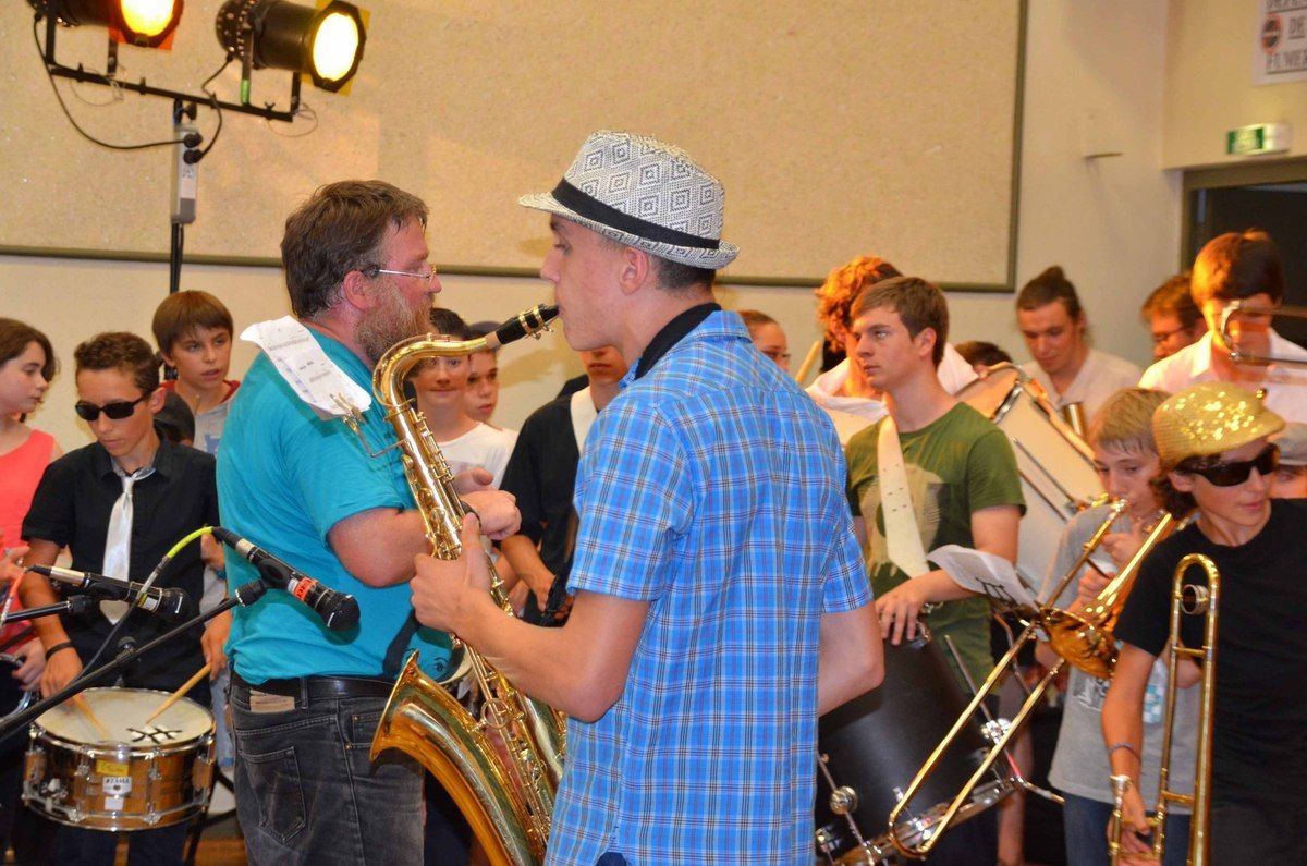 Comme le premier concert de fin de stage, le second stage de Jazz en Herbe qui réunissait du 27 juillet au 7 août 47 jeunes musiciens de 10 à 16 ans à la MFR (maison familiale rurale) de Pont-de-Veyle s'est achevé dans l'ambiance surchauffée, au propre et au figuré, de la salle des fêtes de Pont-de-Vaux. Les trois groupes dirigés par Elodie Pasquier, Pierre Philibert et Stéphane Maitrot, qui avaient précédemment animé ces quinze jours de formation et de perfectionnement au jazz, ont joué six morceaux pendant lesquels chaque stagiaire s'est livré à des improvisations plus ou moins assurées selon l'âge et les niveaux. Certaines de ces improvisations ont été magistrales et dignes de jazzmen professionnels comme celle de Jonathan Hess, un virtuose du saxophone soprano, un jeune homme de 15 ans dont l'avenir s'annonce brillant dans le jazz.