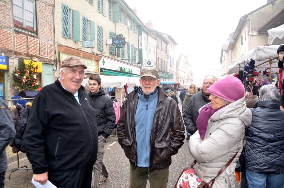 Malgré le brouillard et la froidure du matin, le public était en nombre mercredi matin sur le dernier marché de l'année. Ce 52ème marché de l'année marquait le terme de presque autant de mercredis épargnés par de mauvaise météorologie. Bon pour le moral des marchands et des consommateurs. Du côté des marchands forains, le nombre approchait la centaine. « Il manque quelques bancs dont les propriétaires sont en vacances, mais j'ai comblé les vides avec une quinzaine de forains de passage qui étaient au rappel du matin » confiait Pascal Guyonnet, le garde municipal qui fait office de placier.