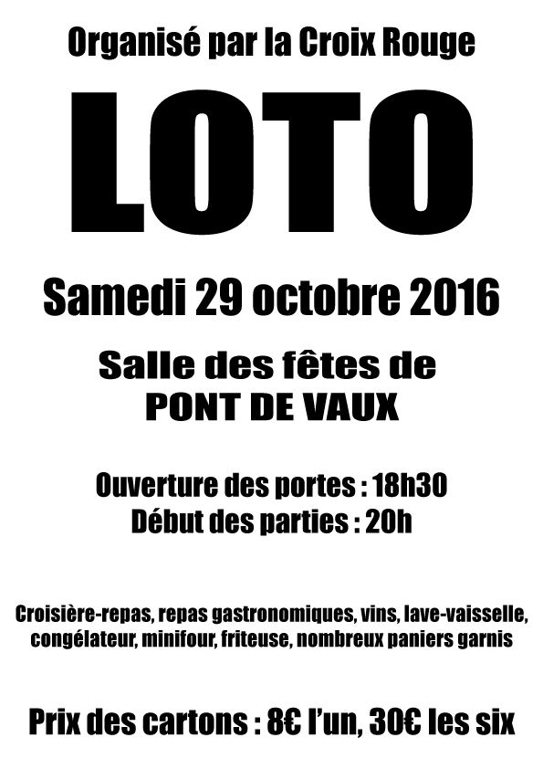 Le loto annuel de la délégation du Val de Saône et la Croix rouge aura lieu le samedi 29 octobre.