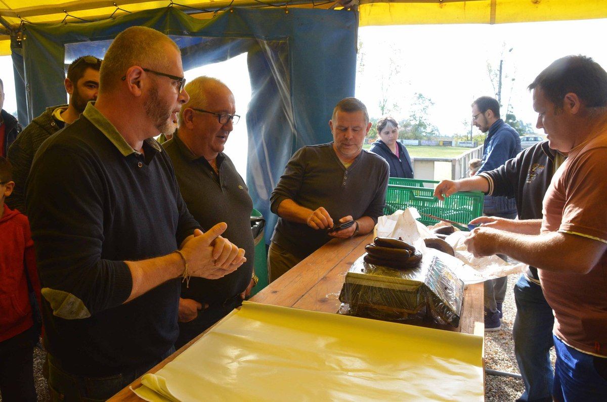 Très bonne vente de plats à emporter au stade du Rugby club de Haute-Bresse dimanche matin où Philippe Féyeux, le responsable des manifestations, et Franck Couturier, président des « jaune et bleu », organisaient cette matinée empreinte de convivialité sous un beau soleil automnal. Ce sont en effet 400 kg de boudin et 900 boulettes qui ont été vendues. « L'an dernier nous avions battu tous les records et cette année nous battons le record de l'an dernier » jubilait Philippe Féyeux, un couteau à la main pour trancher les chapelets de boudin.