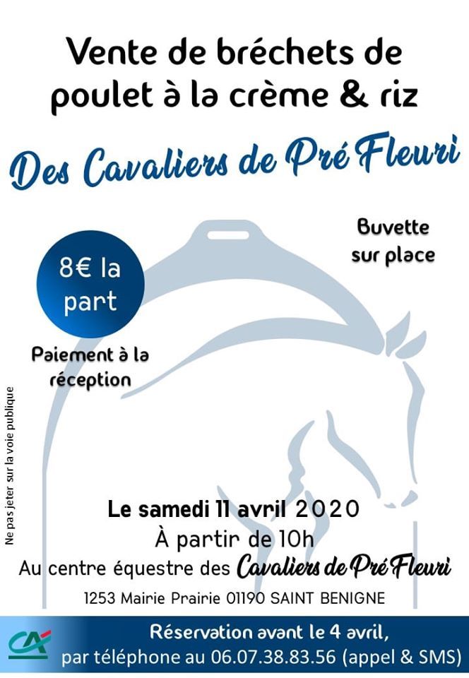 Les Cavaliers de Pré fleuri organisent une vente de plats à emporter en avril.